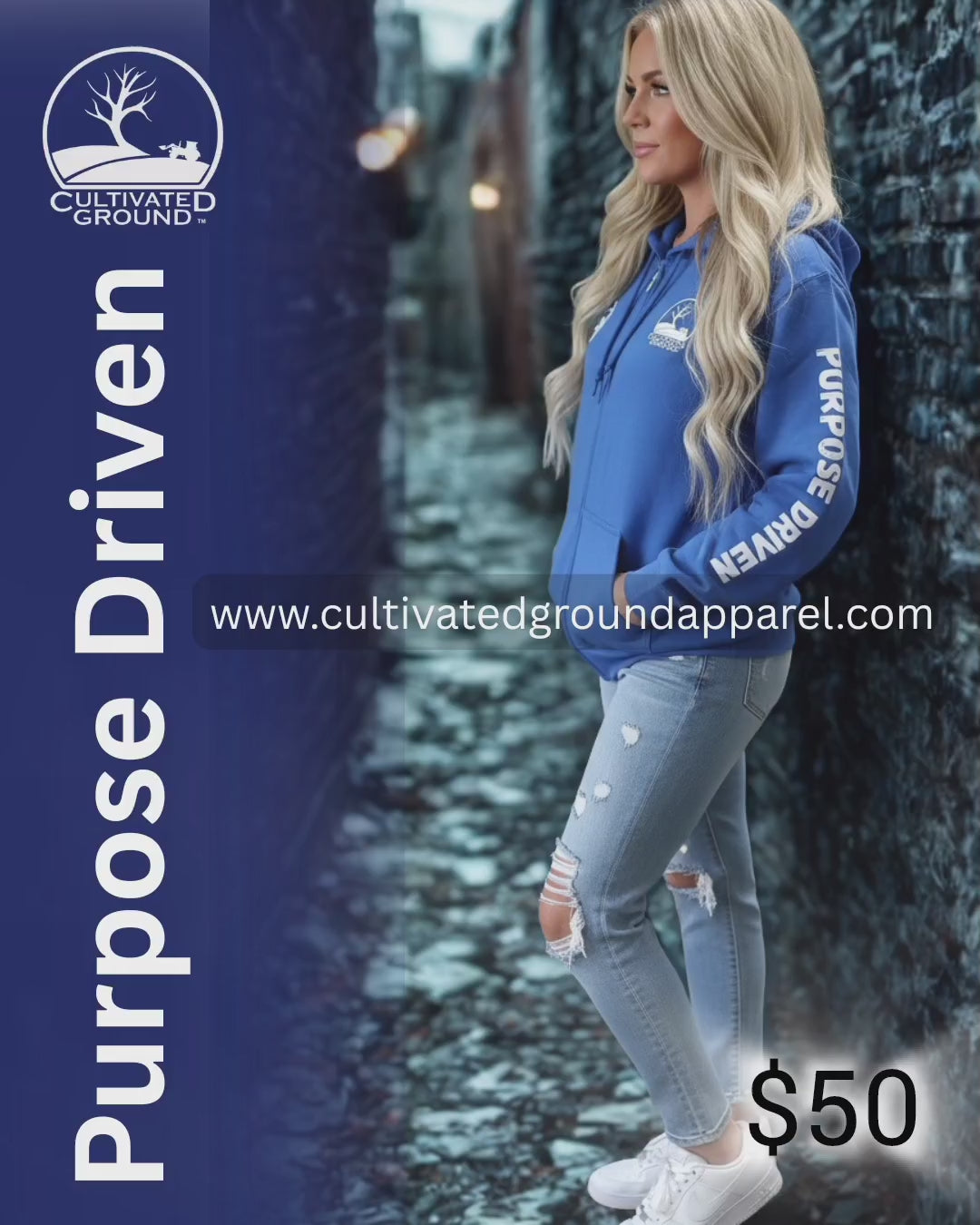 Wear your mission. This premium zip-up hoodie combines everyday comfort with a bold statement of intent. Featuring the signature Cultivated Ground tree emblem and the "Purpose Driven" mantra down the sleeves, this piece is designed for those who work hard and stay focused on the bigger picture.